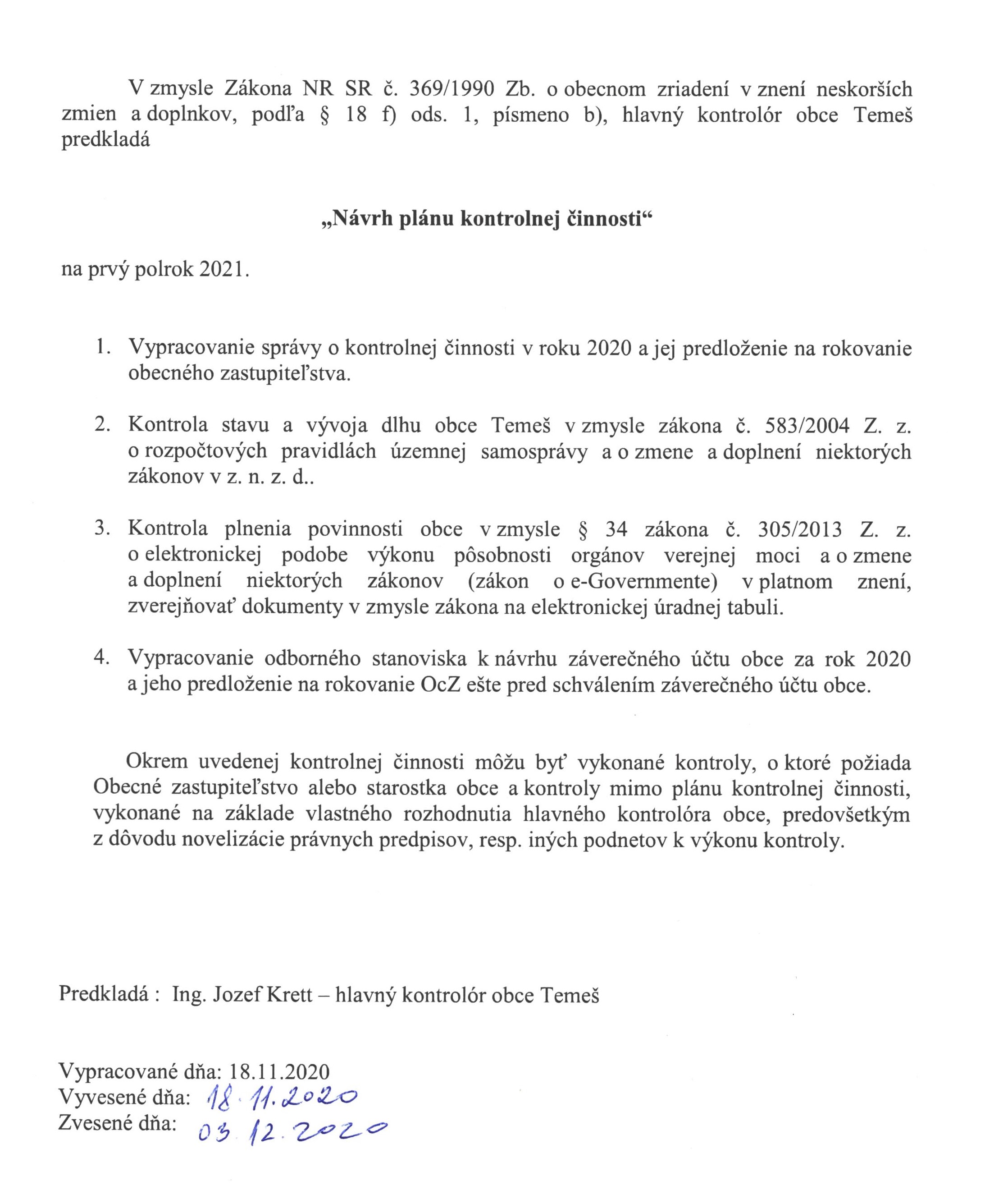 Návrh plánu kontrolnej činnosti na prvý polrok 2026 - 2028